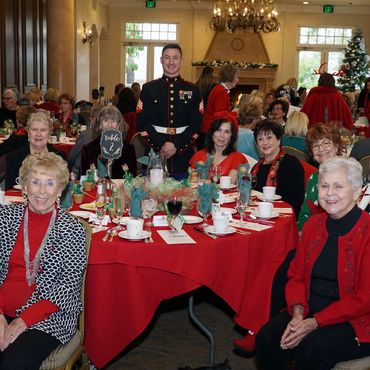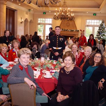 On December 5, 2018 a beautiful Holiday Luncheon was held at Spanish Hills Country Club in Camarillo. Attendees came with their donations for Toys for Tots and were received by five Marines in dress blues who joined us for lunch. Background music by Harpist Monica C. Chieffo was enjoyed by all. Chairman of the event was Crystal Salapatas.